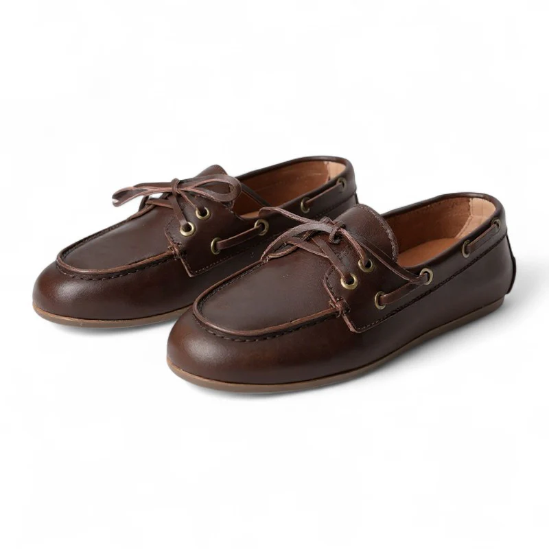 Avy - Mocassin Femme Plat Style Bateau Avec Lacets Classiques Souple